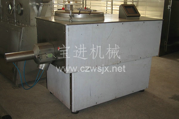 粉體物料與粘合劑在圓筒形容器中由底部混合漿充分混合成濕潤軟材,然后由側置的高速粉碎槳切割成均勻的濕顆粒。